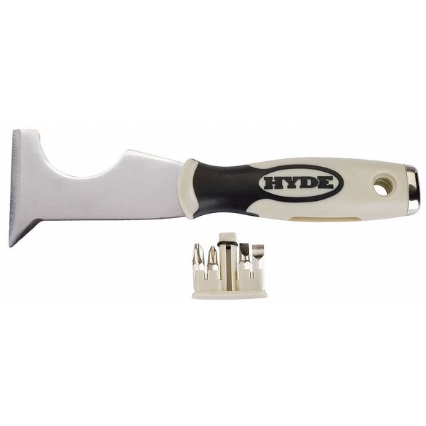 SKU G4385166Categories Paint and Body Equipment , Raw MaterialsDescription Painters Tools, Nonsparking No, Stiff, Blade Type 10-in-1, Blade Width 2 1/2 in, Blade Material Carbon Steel, Handle Material Polypropylene, Painters Tool, Blade Length 3 1/4 in, Handle Length 5 in, Handle Design Hammer Head, Soft Grip, No. of Edges 1, Color Tan, Overall Length 8 1/4 in, Includes (4) Screwdriver Bits Stored in HandlegraingerSKU: 16W175, mscSKU: 35573559, zoro_no: G4385166, mongo_id: 65bbe7a79a749db82274d521
