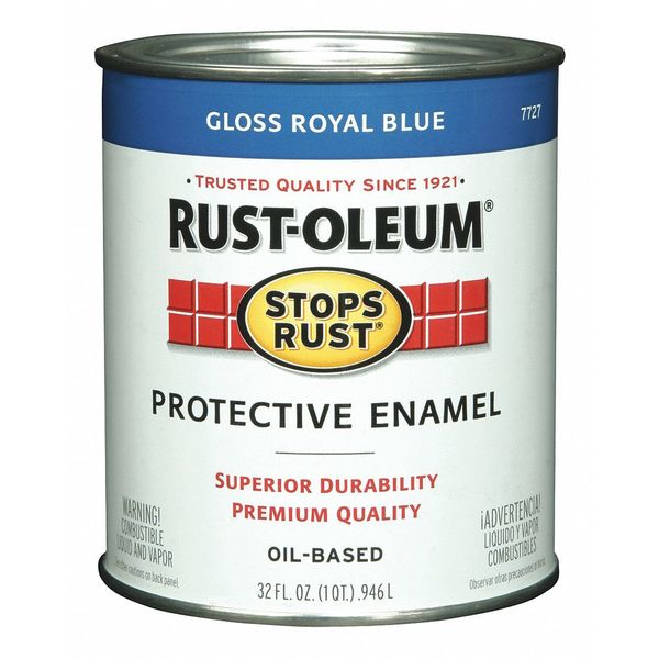 $19.99 / eachWeb priceInterior/Exterior Paint, Glossy, Oil Base, Royal Blue, 1 qtSKU G4106341Categories Paint and Body EquipmentDescription Enamel Paint, For Use On Surface Material Metal, Wood, Paint Base Type Oil, Paint Color Family Blues, Royal Blue, Finish Gloss, Size 1 qt, Coverage 50 to 90 sq ft/gal, VOC Content Less than 485g/L, Dry Time Recoat 24 hr, Paint Sub-Brand Stops Rust, Paint Cleanup Mineral Spirits, Dry Time 5 to 9 hr, Min. Application Temp. 50 Degrees to 90 Degrees F, Application Method Brush, Roll, Spray, Features Corrosion Resistant, DurablegraingerSKU: 39DP18, mscSKU: , zoro_no: G4106341, mongo_id: 65bbe75f3aaddbd5a908f461