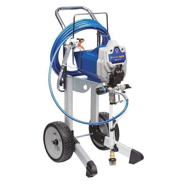 $1,152.49 / eachWeb priceAirless Paint Sprayer, Cart, 7/8 HPSKU G4023559Categories Paint and Body EquipmentDescription Airless Paint Sprayer, Magnum ProX19, Cart Style, 7/8 hp HP, Flow Rate 0.38 gpm, Voltage 120V AC, Operating Pressure 3,000 psi, Guns Supported 1, Tip Size Included 0.015 in, Max. Tip Size 0.019 in, Hose Length 50 ft, Max. Hose Length 150 ft, Height 37 5/8 in, Length 19 1/4 in, Width 17 in, For Use With Architectural Paint and Coatings, Includes 50 ft Airless Hose, 8 oz Pump Armor Storage Fluid, Metal Spray Gun with Hose Swivel, Spray TipgraingerSKU: 48YD37, mscSKU: , zoro_no: G4023559, mongo_id: 65bbee1d526e052139af0191
