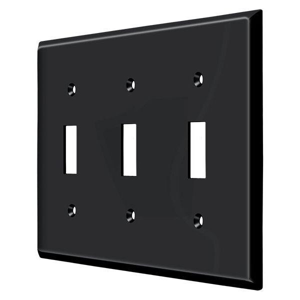 Triple Standard Switch Plate, Number of Gangs: 3 Solid Brass, Paint Black Finish