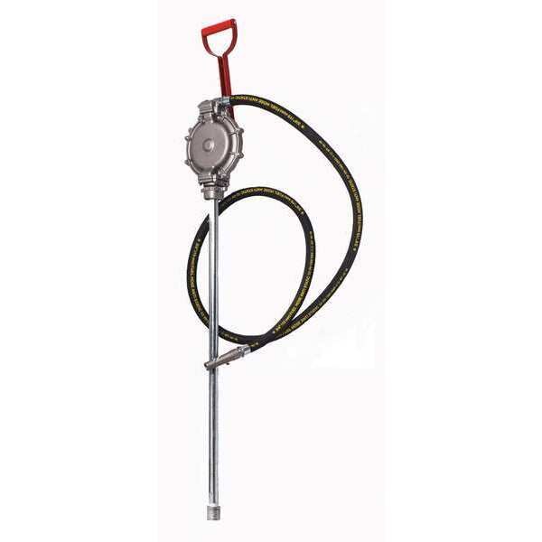 $374.61 / eachWeb priceHand Operated Drum Pump, 3 gpm, 159" HSKU G5911206Categories PumpsDescription Hand Operated Drum Pump, Max. Outlet Pressure 10 psi, Spout Connection Size 3/4 in, Self-Priming Yes, Metered No, Hose Length 96 in, Includes Discharge Hose Yes, Piston Material Buna-N, Features Check Valve, Double Diaphragm, Locking Handle, Seal Material Buna-N, For Use With Diesel Fuel, Fuel Oil, Gasoline, Light Petroleum Products, Motor Oil, Adapter Connection Type MNPT, For Container Type Drum, Hose Cover Material Nitrile, Includes Bung Adapter Yes, Includes Nozzle No, Includes Spout YesgraingerSKU: 49XY74, mscSKU: , zoro_no: G5911206, mongo_id: 65bbe79b3aaddbd5a90a4790