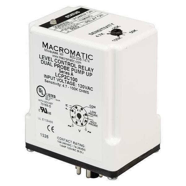 $103.36 / eachWeb priceControl Relay, Dual Pump Up, 120VSKU G5872221Categories PumpsDescription Level Control Relay, Base Shape Octal, Contact Form SPDT, Current Rating 10 A, Electrical Connection 8-Pin Terminal, Flat Pin Width Not Applicable, Input Voltage 120V AC, Minimum Resistance Sensitivity 4,700 ohm, Maximum Resistance Sensitivity 100,000 ohm, Number of Pins 8, Number of Probes Dual Probe, Relay Function Pump Up, Contact Rating (AC) 10 A @ 240V AC, Contact Rating (DC) 7 A @ 28V DC, Mounting Style Socket, Status Indicator LED Indicator, Body Depth 2.8 in, Body Height 3.2 ingraingerSKU: 31EL62, mscSKU: , zoro_no: G5872221, mongo_id: 65bbe6763aaddbd5a902fcb4