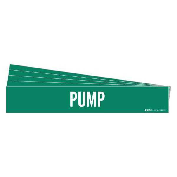 SKU G702141435Categories Adhesives, Epoxy & Sealants , PumpsDescription Pipe Marker, Pipe Marker Mounting Style Adhesive Pipe Marker, Pipe Marker Legend Pump, Legend Text Color White, Character Height 3 1/2 in, Background Color Green, With or Without Arrows Without, Package Quantity 5$24.74 / eachWeb price