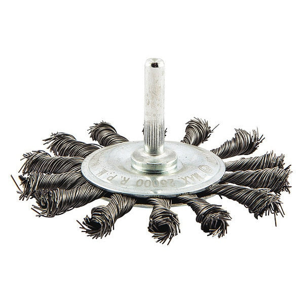 Wire Wheel Brush, Knotted, Carbon SteelSKU G6537531Categories Raw MaterialsDescription Wire Wheel Brush, Wire Wheel Brush, Bristle Type Knotted Wire, Brush Dia. 3 1/4 in, Mounting Type Shank, Arbor Hole Size No Arbor, Abrasive Shank Size 1/4 in, Wire Dia. 0.014 in, Bristle Trim Length 5/8 in, Abrasive Material Carbon Steel, Face Width 3/8 in, Max. RPM 25,000 RPM, For Use With Die and Pencil GrindersgraingerSKU: 483P43, mscSKU: , zoro_no: G6537531, mongo_id: 65bbe7633aaddbd5a9090b61