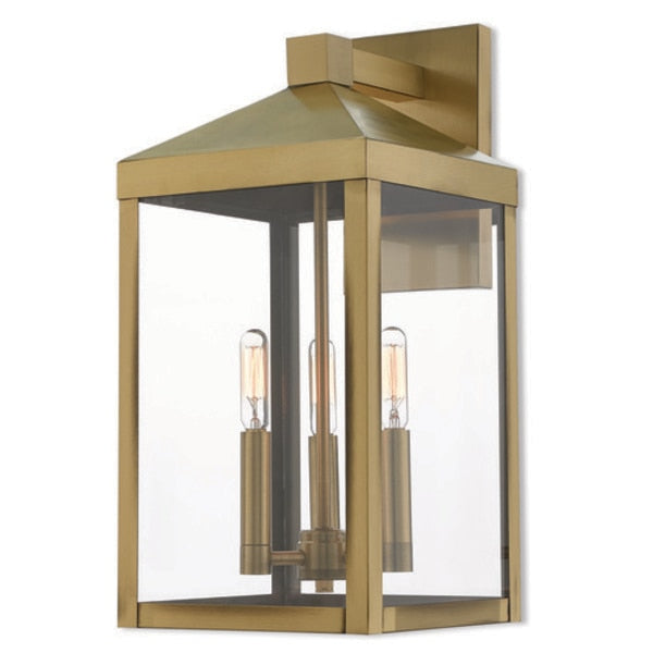Nyack 3 Light Antique Brass Outdoor Wall Lantern