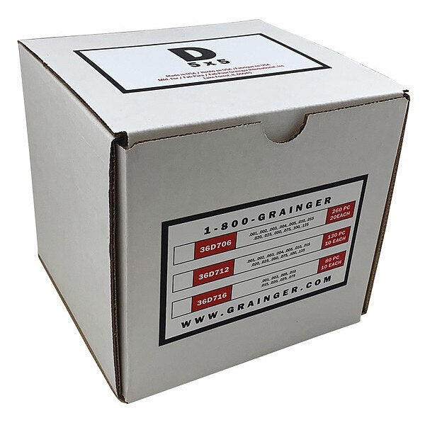 Slotted Shim Kit 5 x 5", Stainless Steel, 80 PCSSKU G4995751Categories Raw MaterialsDescription Slotted Shim Assortment, Slotted Shim Type Tabbed, Trade Size D, Shim Length 5 in, Shim Width 5 in, Thickness 0.001 in, 0.003 in, 0.005 in, 0.01 in, 0.015 in, 0.02 in, 0.025 in, 0.075 in, Slot Width 1 5/8 in, Slot Depth 3 1/8 in, Tab Height 1 3/8 in, Tab Width 3 in, Thickness Tolerance +0.000/-0.074 in, Length Tolerance +/- 0.015 in, Width Tolerance +/-0.015 in, Material Stainless Steel, Material Grade/Class 18-8, Finish Plain, Temper Full Hard, Soft (Annealed), Color Gray, Number of Pieces 80$275.61 / eachWeb price -