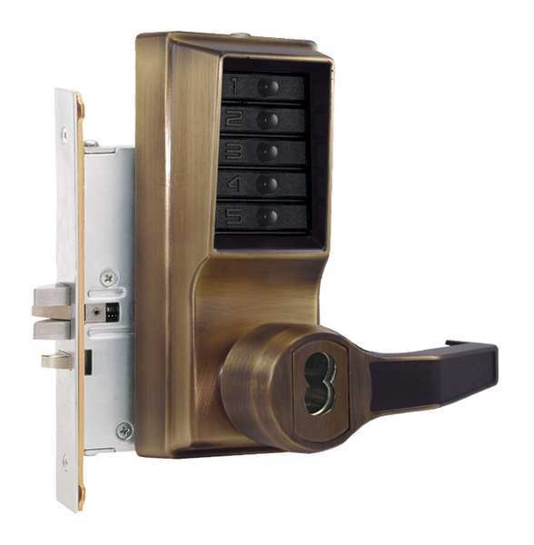 SKU G0490239Categories Raw MaterialsDescription Mechanical Push Button Lockset, Handle Type Lever, Function Entry, Key Override Options Best and Equivalents (6 or 7 Pin), Hand Right, Finish Antique Brass, Door Thickness 1-3/4 in, Keypad 5 Button, Vandal Resistant, Backset 2-3/4 in, Grade 1, ADA Compliant Yes, Yes Fire Rated, Case Material Steel, Series 8000, Latch Length 1/2 in, Max. User Codes 1, Standards UL-Listed, Weather Resistant Yes, Mechanical, Mortise / Cylindrical MortisegraingerSKU: 44ZY72, mscSKU: , zoro_no: G0490239, mongo_id: 65bbe74a9a749db82272d55a