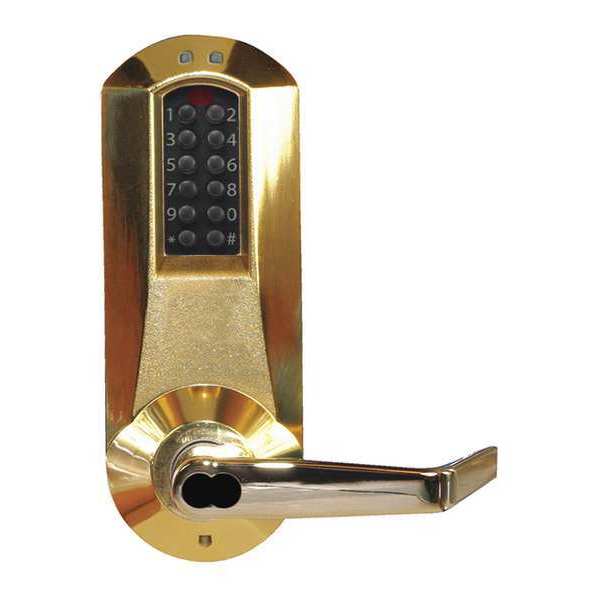 SKU G1616749Categories Raw MaterialsDescription Electronic Locks, Function Storeroom, Access Method Keypad, Mounting Style Cylindrical, Lock Material Metal, Finish Bright Brass, Series 5000, Handle Type Lever, Door Thickness 1-3/4 in, Key Override Options Schlage In.C In. Keyway (Included), Hand Nonhanded, Network Interface AL-DTM2, Outside Height 8 7/8 in, Outside Width 3 3/8 in, Outside Depth 3 13/16 in, Keypad Material Metal, Power Source (4) AA Batteries, Battery Life 1 yr, Operating Temp. Range -31 Degrees to 130 Degrees FgraingerSKU: 44ZY49, mscSKU: , zoro_no: G1616749, mongo_id: 65bbe74a9a749db82272d557