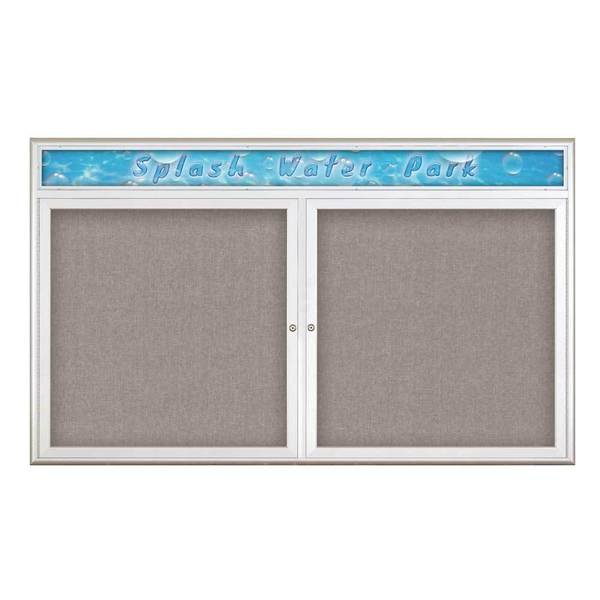 Double Door Radius Corkboard With Header, UV8014-SATIN-PEARL