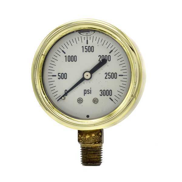 Pressure Gauge, 0 to 3000 psi, 1/4 in MNPT, Brass, GoldSKU G8655053Categories Raw MaterialsDescription Industrial Pressure Gauge, Nominal Dial Size 2 1/2 in, Accuracy +/-2-1-2 Percent, Gauge Case Material Forged Brass, Process Connection Type NPT, Process Connection Gender Male, Lens Material Polycarbonate, Process Connection Size 1/4 in, Field Fillable No, Process Connection Location Bottom, Case Color Gold, IP/NEMA Rating Not Rated, Primary Pressure Range 0 to 3,000, Dry Dampening Feature None, Vibration Resistance Liquid-Filled, Dial Color White, Pressure Gauge Type Industrial Pressure GaugegraingerSKU: 20TY23, mscSKU: , zoro_no: G8655053, mongo_id: 65bbee1d526e052139af003a