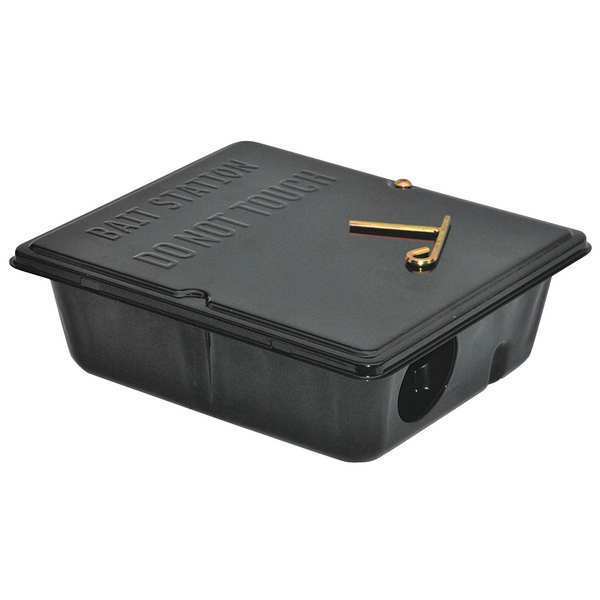 SKU G4703054Categories Raw MaterialsDescription Tamper Resistant Bait Box, Disposable No, Used For Rodent Control, Trap Style Bait Box, Overall Length 8 1/2 in, Overall Width 10 in, Overall Height 3 1/4 in, Black, Material Metal and Plastic, Weight 2.4 lb$28.90 / eachWeb price