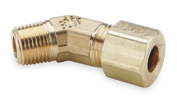 1/4" Compression x MNPT Brass 45 Degree Elbow 10PKSKU G0334397Categories Raw MaterialsDescription Male Elbow, 45 Degrees, Application Air, Inert Gases, Non-Combustible Gases, Potable Water, Fitting Side A Connection Type Compression, Fitting Side B Connection Type MNPT, Fitting Material Brass, Fitting Side A Tube Outer Diameter 1/4 in, Maximum Operating Pressure 1,400 psi, Maximum Operating Temperature 200 Degrees F, Overall Length 13/16 in, Specific Fitting Shape 45 Degrees Elbow Adapter, Fitting Side B Pipe Size 1/4 in, Thread Size B 7/16-24, Series CompressiongraingerSKU: 1VDL1, mscSKU: 63032601, zoro_no: G0334397, mongo_id: 65bbee31526e052139af6bdd