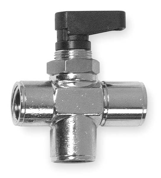 $31.99 / eachWeb price1/8" FNPT Nickel Brass Mini Ball Valve 3-Way, Standards: NASKU G0751536Categories Raw MaterialsDescription Mini Ball Valve, Body Material Nickel-Plated Brass, Body Style 3-Way, 1-Piece, Pipe Size 1/8 in, Connection Type FNPT x FNPT x FNPT, Full Port, Max. Pressure 190 psi CWP, Temp. Range 0 Degrees to 200 Degrees F, Ball Material Chrome Plated Brass, Seat Material PTFE, Stem Type Blowout Proof, Handle Type Wedge, Handle Material Composite, Stem Material Nickel Plated BrassgraingerSKU: 1ZPK4, mscSKU: 53660429, zoro_no: G0751536, mongo_id: 65bbee36526e052139af9143