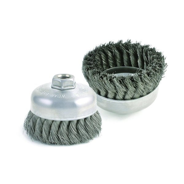 BUS412 Wire Cup Brush 4" Diameter, 1" Trim Length, 5/8-11 Arbor Hole, .012 Hi-Temp Carbon Steel