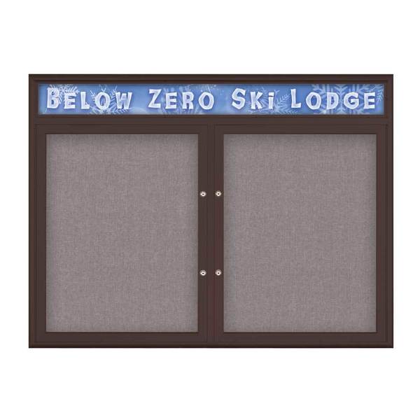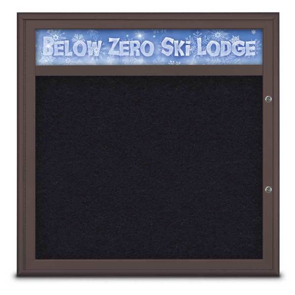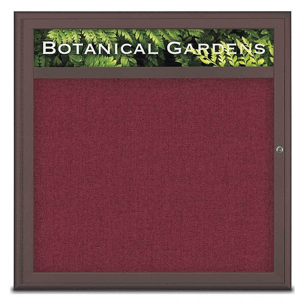 Corkboard, Single Door, Radius Frame, Header, 36x36", Bronze/Burgundy