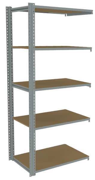 $526.24 / eachWeb priceBoltless Shelving Unit, 30-5/8"D x 36-5/8"W x 84"H, 5 Shelves, Carbon SteelSKU G2003449Categories Raw MaterialsDescription Boltless Shelving, Low Profile, Overall Depth 30 in, Overall Height 84 in, Overall Width 36 in, Shelf Gauge 14 ga, Shelf Adjustment Increments 1 1/2 in, Steel, Particleboard, Steel, (20) Beams, (4) Posts, Includes Decking Yes, 600 lb, Whole Unit Load Capacity 3,000 lb, Starter, Open, Post Gauge 14 ga, Number of Shelves 5, Maximum Post Load Capacity 8,000 lb with Beams Evenly Spaced at 24 in, Powder Coated, Light-Duty, GraygraingerSKU: 44P709, mscSKU: , zoro_no: G2003449, mongo_id: 65bbe7863aaddbd5a909e184