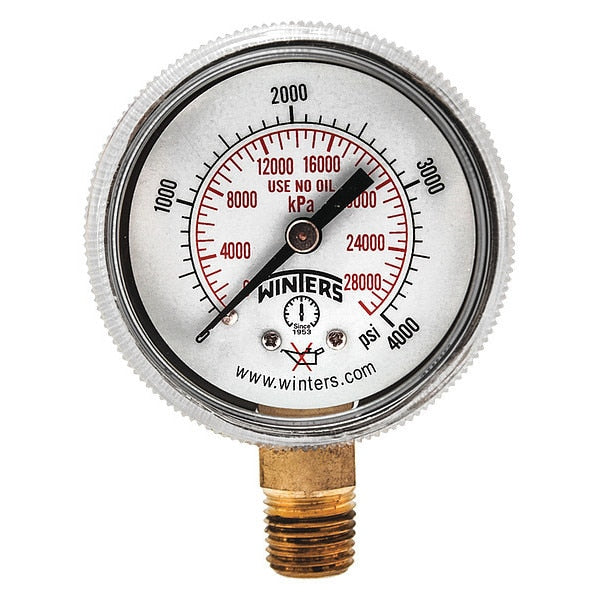 Pressure Gauge, 0 to 4000 psi, 1/4 in MNPT, Brass