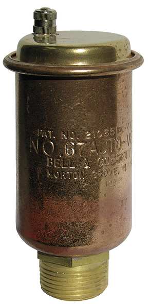 $79.49 / eachWeb priceAutomatic Air Vent, Brass, 1/8 MNPTSKU G2508317Categories Raw MaterialsDescription Automatic Air Vent, Max. Working Pressure (PSI) 35, 1/8 In. MNPT Inlet, Height (In.) 3-3/16 In., Width (In.) 1-1/2 In., Brass, Max. Temp. (F) 240graingerSKU: 6LFC1, mscSKU: , zoro_no: G2508317, mongo_id: 65bbe8339a749db82277a94c