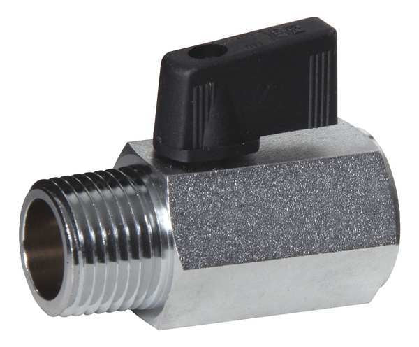 $14.61 / eachWeb price1/4" FNPT x MNPT Nickel Brass Mini Ball Valve InlineSKU G9752197Categories Raw MaterialsDescription Mini Ball Valve, Body Material Lead-Free Nickel Plated Brass, Body Style Inline, 1-Piece, Pipe Size 1/4 in, Connection Type FNPT x MNPT, Full Port, Max. Pressure 450 psi CWP, Max. Steam Pressure 150 psi WSP, Temp. Range -20 Degrees to 370 Degrees F, Ball Material 304 Stainless Steel, Seat Material PTFE, Stem Type Blowout Proof, Handle Type Wedge, Handle Material Polycarbonate, Stem Material BrassgraingerSKU: 38EF97, mscSKU: , zoro_no: G9752197, mongo_id: 65bbe7c73aaddbd5a90b65de