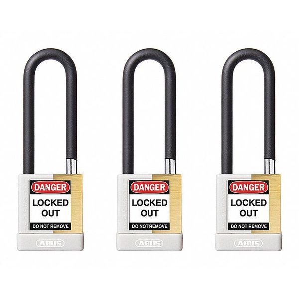 Keyed Padlock, Open, Rectangular Brass Body, Plastic Encased Hardened Steel Shackle, 3/4 in WSKU G4434530Categories Raw MaterialsDescription Keyed Padlock, Body Color White, Body Height 1 3/4 in, Body Material Brass, Body Thickness 3/4 in, Body Width 2 in, Header None/No Header, Key Type Keyed Different, Non-Removable Key No, Shackle Diameter 1/4 in, Shackle Height 3 in, Shackle Material Hardened Steel, Shackle Type Open, Width Across Shackle 3/4 in, Body Material Coating Powder Coated, Body Shape Rectangular, Control Key Registration Required Yes, Includes (2) Keys, Package Quantity 3graingerSKU: 459U52, mscSKU: , zoro_no: G4434530, mongo_id: 65bbe7c49a749db822756394