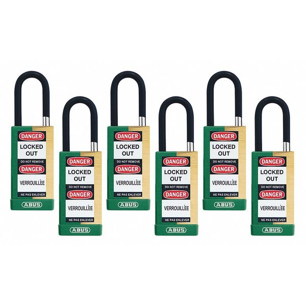 SKU G4434293Categories Raw MaterialsDescription Keyed Padlock, Body Color Green, Body Height 3 in, Body Material Brass, Body Thickness 3/4 in, Body Width 2 in, Header None/No Header, Key Type Keyed Alike, Non-Removable Key No, Shackle Diameter 1/4 in, Shackle Height 1 1/2 in, Shackle Material Hardened Steel, Shackle Type Open, Width Across Shackle 3/4 in, Body Material Coating Powder Coated, Body Shape Rectangular, Control Key Registration Required Yes, Includes (2) Keys, Package Quantity 6graingerSKU: 459U30, mscSKU: , zoro_no: G4434293, mongo_id: 65bbe7c49a749db82275639b