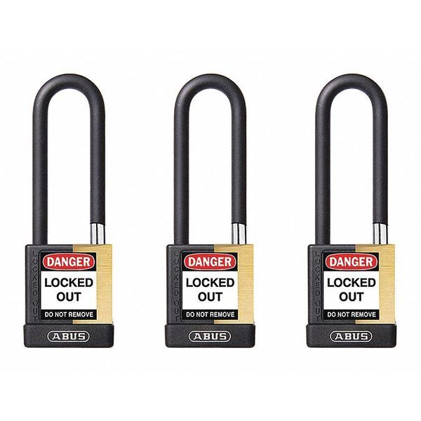 Keyed Padlock, Open, Rectangular Brass Body, Plastic Encased Hardened Steel Shackle, 3/4 in WSKU G4435930Categories Raw MaterialsDescription Keyed Padlock, Body Color Black, Body Height 1 3/4 in, Body Material Brass, Body Thickness 3/4 in, Body Width 2 in, Header None/No Header, Key Type Keyed Alike, Non-Removable Key No, Shackle Diameter 1/4 in, Shackle Height 3 in, Shackle Material Hardened Steel, Shackle Type Open, Width Across Shackle 3/4 in, Body Material Coating Powder Coated, Body Shape Rectangular, Control Key Registration Required Yes, Includes (2) Keys, Package Quantity 3graingerSKU: 459T97, mscSKU: , zoro_no: G4435930, mongo_id: 65bbe7793aaddbd5a9099156
