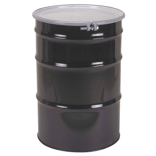 Open Head Transport Drum, Carbon Steel, 55 gal, Unlined, Black
