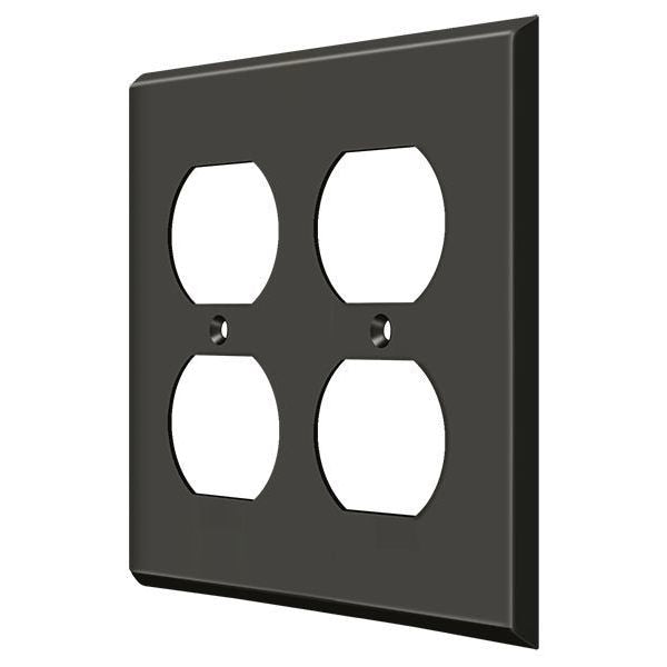 Quadruple Outlet Switch Plate, Number of Gangs: 2 Solid Brass, Oil Rubbed Bronze Finish