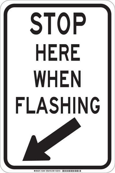 Stop Here When Flashing Sign, 12" W, 18" H, English, Aluminum, White