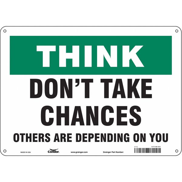 SKU G5791517Categories SafetyDescription Safety Sign, Horizontal Rectangle, Number of Printed Sides 1, English, Sign Format Other Format, Sign Legend Don't Take Chances Others Are Depending On You, Sign Legend Background Color Green, White, Sign Legend Style TextgraingerSKU: 479H58, mscSKU: , zoro_no: G5791517, mongo_id: 65bbe91d22d7a989a993598c