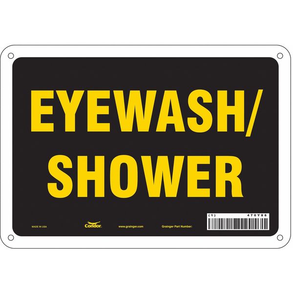 Safety Sign, 7 in Height, 10 in Width, Aluminum, Vertical Rectangle, English, 470Y86SKU G5376642Categories SafetyDescription Safety Sign, Vertical Rectangle, Number of Printed Sides 1, English, Sign Format Other Format, Sign Legend Eyewash / Shower, Sign Legend Background Color Black, Sign Legend Style TextgraingerSKU: 470Y86, mscSKU: , zoro_no: G5376642, mongo_id: 65bbe91d22d7a989a9935901