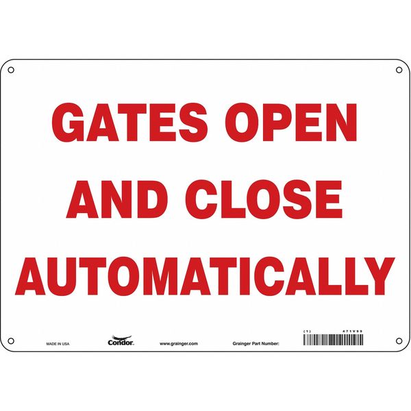 Safety Sign, 10 in Height, 14 in Width, Aluminum, Horizontal Rectangle, English, 471V99SKU G5207811Categories SafetyDescription Safety Sign, Horizontal Rectangle, Number of Printed Sides 1, English, Sign Format Other Format, Sign Legend Gates Open And Close Automatically, Sign Legend Background Color White, Sign Legend Style TextgraingerSKU: 471V99, mscSKU: , zoro_no: G5207811, mongo_id: 65bbe91d22d7a989a9935957