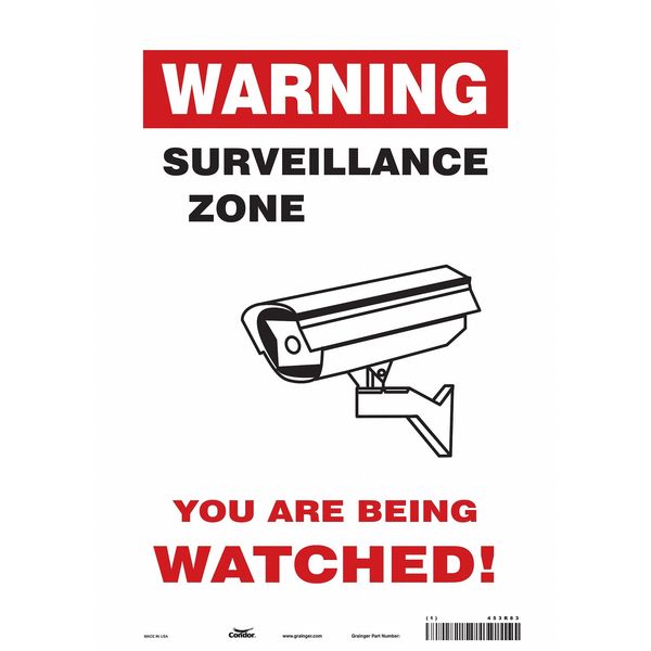 Security Sign, 14 in H, 10 in W, Vinyl, Vertical Rectangle, English, 453R83SKU G5083117Categories SafetyDescription Security Sign, Vertical Rectangle, Number of Printed Sides 1, English, Sign Format Other Format, Sign Legend Surveillance Zone You Are Being Watched!, Sign Legend Background Color Red, White, Sign Legend Style Symbol and TextgraingerSKU: 453R83, mscSKU: , zoro_no: G5083117, mongo_id: 65bbe91d22d7a989a9935838