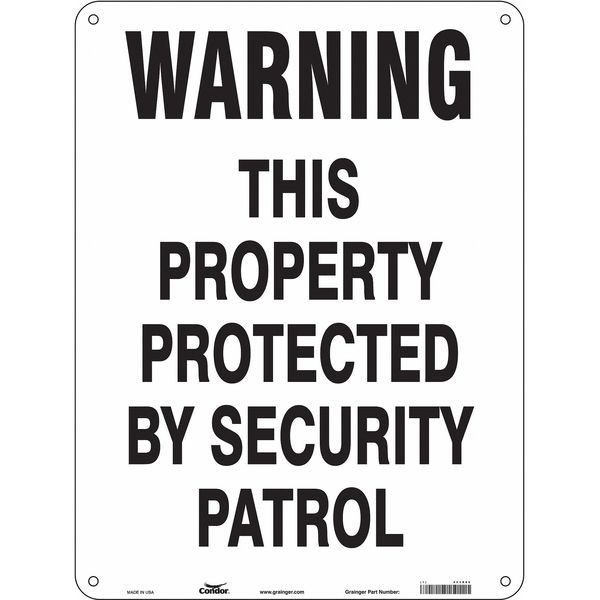 Security Sign, 24 in Height, 18 in Width, Aluminum, Vertical Rectangle, EnglishSKU G5772477Categories SafetyDescription Security Sign, Vertical Rectangle, Number of Printed Sides 1, English, Sign Legend Warning This Property Protected By Security Patrol, Sign Legend Background Color White, Sign Legend Style TextgraingerSKU: 453R86, mscSKU: , zoro_no: G5772477, mongo_id: 65bbe91d22d7a989a99358e5