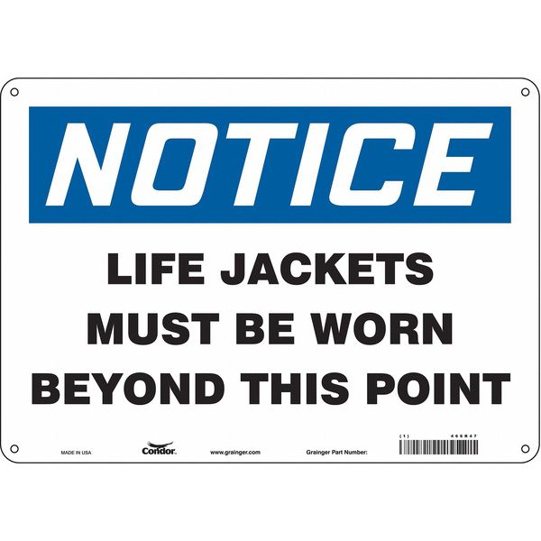 Safety Sign, 10 in Height, 14 in Width, Aluminum, Horizontal Rectangle, English, 466R47SKU G5613139Categories SafetyDescription Safety Sign, Horizontal Rectangle, Number of Printed Sides 1, English, Sign Format Traditional OSHA, Sign Legend Life Jackets Must Be Worn Beyond This Point, Sign Legend Background Color White, Sign Legend Style TextgraingerSKU: 466R47, mscSKU: , zoro_no: G5613139, mongo_id: 65bbe91d22d7a989a99358d7