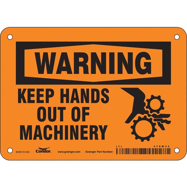 Safety Sign, 5 in Height, 7 in Width, Aluminum, Horizontal Rectangle, EnglishSKU G5843518Categories SafetyDescription Safety Sign, Horizontal Rectangle, Number of Printed Sides 1, English, Sign Format Traditional OSHA, Sign Legend Keep Hands Out Of Machinery, Sign Legend Background Color Orange, Sign Legend Style Symbol and TextgraingerSKU: 478W33, mscSKU: , zoro_no: G5843518, mongo_id: 65bbe91d22d7a989a99357a5