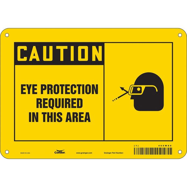 Safety Sign, 7 in Height, 10 in Width, Aluminum, Vertical Rectangle, English, 466W80SKU G5236073Categories SafetyDescription Safety Sign, Vertical Rectangle, Number of Printed Sides 1, English, Sign Format Traditional OSHA, Sign Legend Eye Protection Required In This Area, Sign Legend Background Color Yellow, Sign Legend Style Symbol and TextgraingerSKU: 466W80, mscSKU: , zoro_no: G5236073, mongo_id: 65bbe91d22d7a989a99357b7