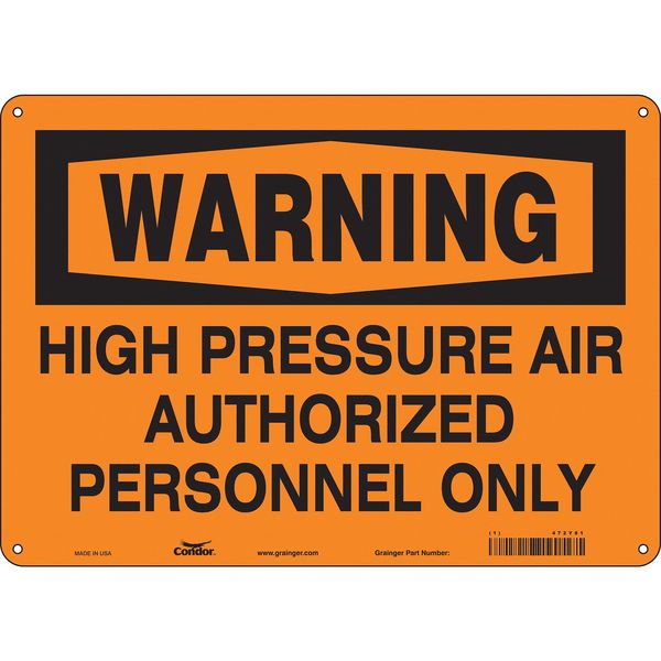 Safety Sign, 10 in Height, 14 in Width, Aluminum, Horizontal Rectangle, English, 472Y81SKU G5273270Categories SafetyDescription Safety Sign, Horizontal Rectangle, Number of Printed Sides 1, English, Sign Format Traditional OSHA, Sign Legend High Pressure Air Authorized Personnel Only, Sign Legend Background Color Orange, Sign Legend Style TextgraingerSKU: 472Y81, mscSKU: , zoro_no: G5273270, mongo_id: 65bbe91d22d7a989a9935873