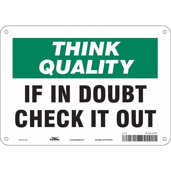 Safety Sign, 7 in Height, 10 in Width, Aluminum, Vertical Rectangle, English, 475J25SKU G5576580Categories SafetyDescription Safety Sign, Vertical Rectangle, Number of Printed Sides 1, English, Sign Format Other Format, Sign Legend If In Doubt Check It Out, Sign Legend Background Color Green, White, Sign Legend Style TextgraingerSKU: 475J25, mscSKU: , zoro_no: G5576580, mongo_id: 65bbe91d22d7a989a99357ce