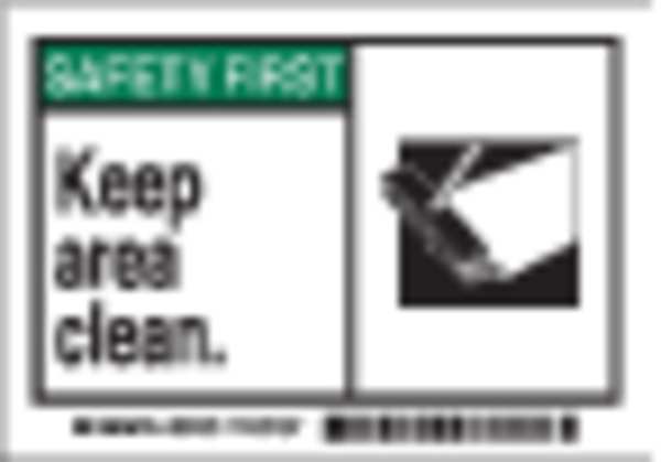 SKU G4766045Categories SafetyDescription Safety Label, Horizontal Rectangle, Number of Printed Sides 1, English, Sign Legend Keep Area Clean., Sign Legend Style Symbol and Text, Package Quantity 5graingerSKU: 3XAD3, mscSKU: , zoro_no: G4766045, mongo_id: 65bbe91d22d7a989a99356c4