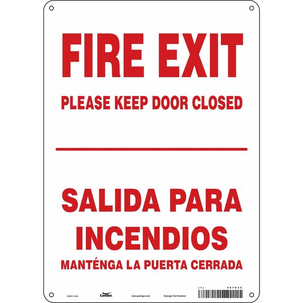 SKU G5291489Categories SafetyDescription Safety Sign Emergency Exit, Vertical Rectangle, Number of Printed Sides 1, English, Spanish, Sign Legend Fire Exit Please Keep Door Closed / Salida Para Incendios Mantenga La Puerta Cerrada, Sign Legend Background Color White, Sign Legend Style TextgraingerSKU: 467U32, mscSKU: , zoro_no: G5291489, mongo_id: 65bbe91d22d7a989a9935784