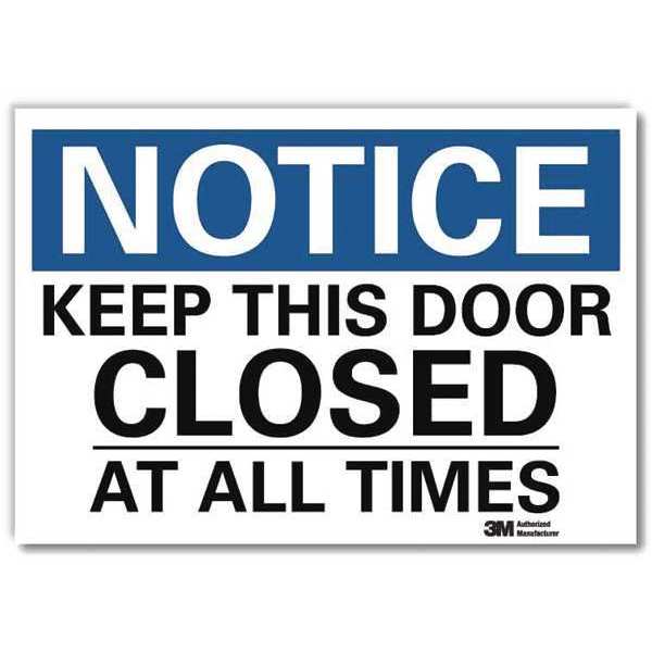 Notice Sign, 7 in H, 10 in W, Reflective Sheeting, Vertical Rectangle, English, U5-1299-RD_10X7SKU G2761081Categories SafetyDescription Notice Sign, Vertical Rectangle, Number of Printed Sides 1, English, Sign Legend Keep This Door Closed At All Times, Sign Legend Background Color White, Sign Legend Style TextgraingerSKU: 34JP59, mscSKU: , zoro_no: G2761081, mongo_id: 65bbe91d22d7a989a99353e9