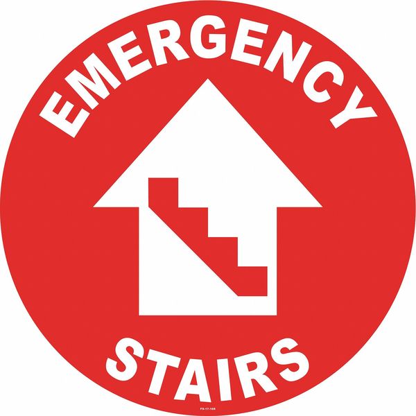 SKU G6281989Categories SafetyDescription Floor Sign, Circle, Number of Printed Sides 1, English, Sign Format Other Format, Sign Legend Emergency Stairs, Vinyl, Sign Legend Background Color Red, Sign Legend Style Symbol and Text, Sign Legend Character Height 1 5/8 ingraingerSKU: 467F72, mscSKU: , zoro_no: G6281989, mongo_id: 65bbe8f722d7a989a99277d6