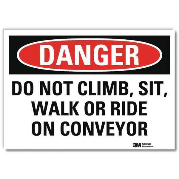 SKU G2749918Categories SafetyDescription Danger Sign, Vertical Rectangle, Number of Printed Sides 1, English, Sign Format Traditional OSHA, Sign Legend Do Not Climb, Sit, Walk Or Ride On Conveyor, Sign Legend Background Color White, Sign Legend Style TextgraingerSKU: 34MP29, mscSKU: , zoro_no: G2749918, mongo_id: 65bbe8339a749db82277b66b