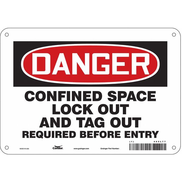 Safety Sign, 7 in Height, 10 in Width, Polyethylene, Vertical Rectangle, English, 465L77SKU G5077858Categories SafetyDescription Safety Sign, Vertical Rectangle, Number of Printed Sides 1, English, Sign Format Traditional OSHA, Sign Legend Confined Space Lock Out And Tag Out Required Before Entry, Sign Legend Background Color White, Sign Legend Style TextgraingerSKU: 465L77, mscSKU: , zoro_no: G5077858, mongo_id: 65bbe8f722d7a989a9927599