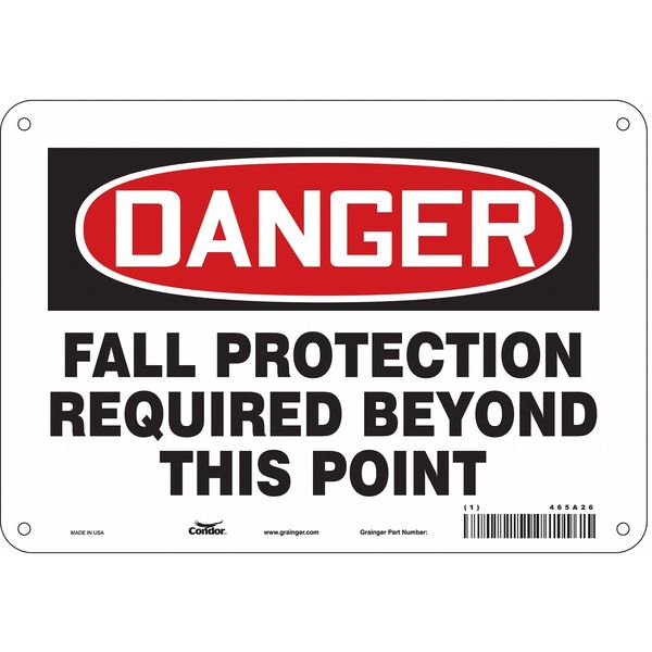 SKU G5516557Categories SafetyDescription Safety Sign, Vertical Rectangle, Number of Printed Sides 1, English, Sign Format Traditional OSHA, Sign Legend Fall Protection Required Beyond This Point, Sign Legend Background Color White, Sign Legend Style TextgraingerSKU: 465A26, mscSKU: , zoro_no: G5516557, mongo_id: 65bbe8f722d7a989a9927611