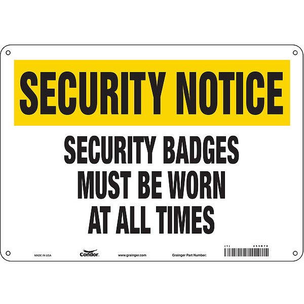 Security Sign, 10 in H, 14 in W, Aluminum, Horizontal Rectangle, English, 453N78SKU G5836192Categories SafetyDescription Security Sign, Horizontal Rectangle, Number of Printed Sides 1, English, Sign Format Other Format, Sign Legend Security Badges Must Be Worn At All Times, Sign Legend Background Color White, Yellow, Sign Legend Style TextgraingerSKU: 453N78, mscSKU: , zoro_no: G5836192, mongo_id: 65bbe8f722d7a989a9927506