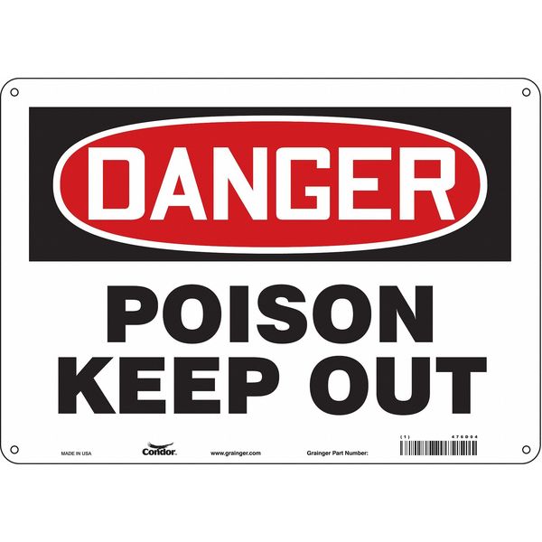 Safety Sign, 10 in Height, 14 in Width, Aluminum, Horizontal Rectangle, English, 476D04SKU G5817222Categories SafetyDescription Safety Sign, Horizontal Rectangle, Number of Printed Sides 1, English, Sign Format Traditional OSHA, Sign Legend Poison Keep Out, Sign Legend Background Color White, Sign Legend Style TextgraingerSKU: 476D04, mscSKU: , zoro_no: G5817222, mongo_id: 65bbe8f722d7a989a9927633