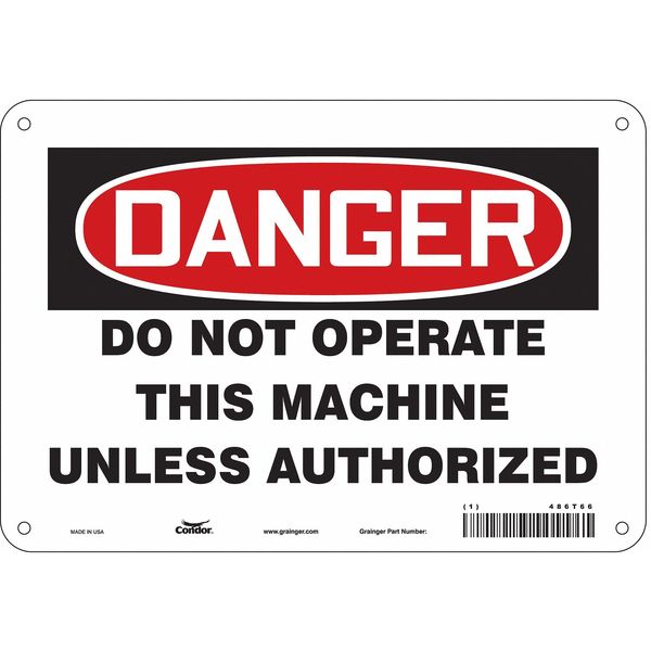 Safety Sign, 7 in Height, 10 in Width, Aluminum, Vertical Rectangle, English, 486T66SKU G6309453Categories SafetyDescription Safety Sign, Vertical Rectangle, Number of Printed Sides 1, English, Sign Format Traditional OSHA, Sign Legend Do Not Operate This Machine Unless Authorized, Sign Legend Background Color White, Sign Legend Style TextgraingerSKU: 486T66, mscSKU: , zoro_no: G6309453, mongo_id: 65bbe8f722d7a989a9927532