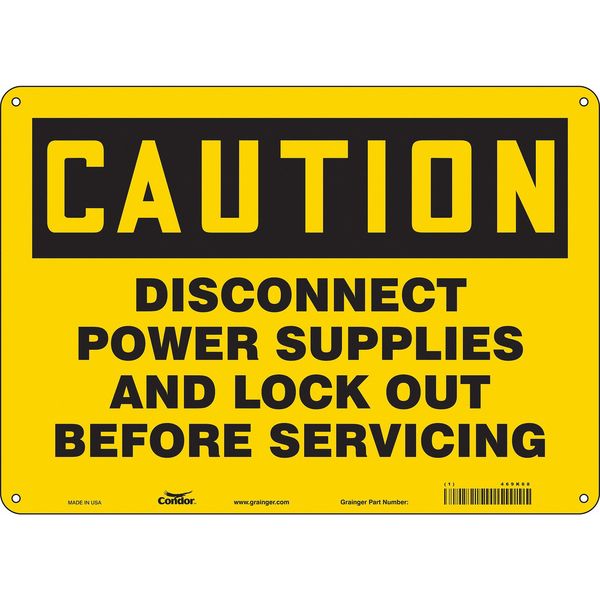 Safety Sign, 10 in Height, 14 in Width, Aluminum, Horizontal Rectangle, English, 469K68SKU G5626122Categories SafetyDescription Safety Sign, Horizontal Rectangle, Number of Printed Sides 1, English, Sign Format Traditional OSHA, Sign Legend Disconnect Power Supplies And Lock Out Before Servicing, Sign Legend Background Color Yellow, Sign Legend Style TextgraingerSKU: 469K68, mscSKU: , zoro_no: G5626122, mongo_id: 65bbe8f722d7a989a99273cd